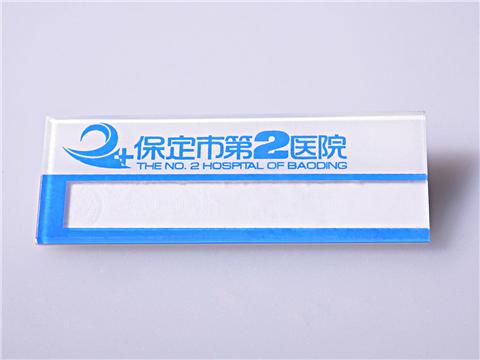 有机胸牌——也叫亚克力胸牌,最常见的工艺为四色或多色丝印,四边抛光,后面粘扣针(这种胸牌的扣针多为塑料式的扣针,分白色与其它色彩的扣针,也叫别针)。也有客户认为表面有透明滴胶的胸号牌会高档些。滴胶工艺也称为滴塑或水晶滴塑,还有地方的用户叫做树脂工艺。亚克力材料的胸牌,最广泛的应用于女装、化妆品美容。可以制作成抽换式用的胸牌。它的特点是能满足不同客户在设计制作方面胸牌色彩多样化的体现。 |