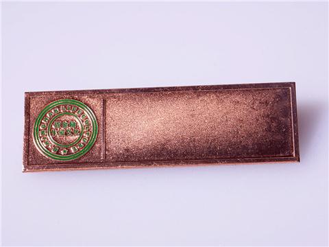 金属员工牌选用高级进口铜材,经冲压、腐蚀、电镀、填漆、滴胶等多工序精工制成。美观大方,尊贵典雅。具有比普通工号牌更显档次更持久耐用,不褪色不变型等特点,充分体现出企业一定的文化内涵。